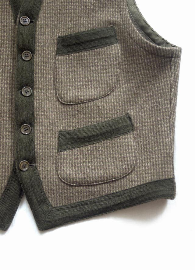jersey waistcoat with vintage wool trim and 1920s Austrian buttons.